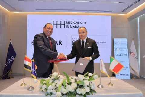 وقّعت شركة ميدار للاستثمار والتنمية العمرانية مذكرة تفاهم مع شركة Gruppo GKSD الإيطالية، بهدف تطوير مدينة طبية تعليمية بحثية متكاملة داخل مدينة “مدى” بالقاهرة الجديدة، باستثمارات تتراوح بين 500 و600 مليون يورو، في خطوة تعزز من مكانة مصر كمركز إقليمي للرعاية الصحية المتقدمة، وفقًا لـ”إنفستجيت“.