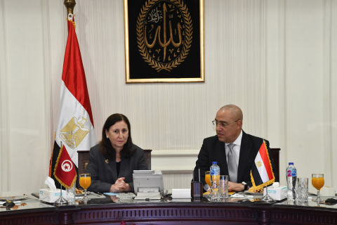 Essam El-Gazzar, Minister of Housing, Utilities, and Urban Communities, holds a meeting with a Tunisian delegation led by Sarra...